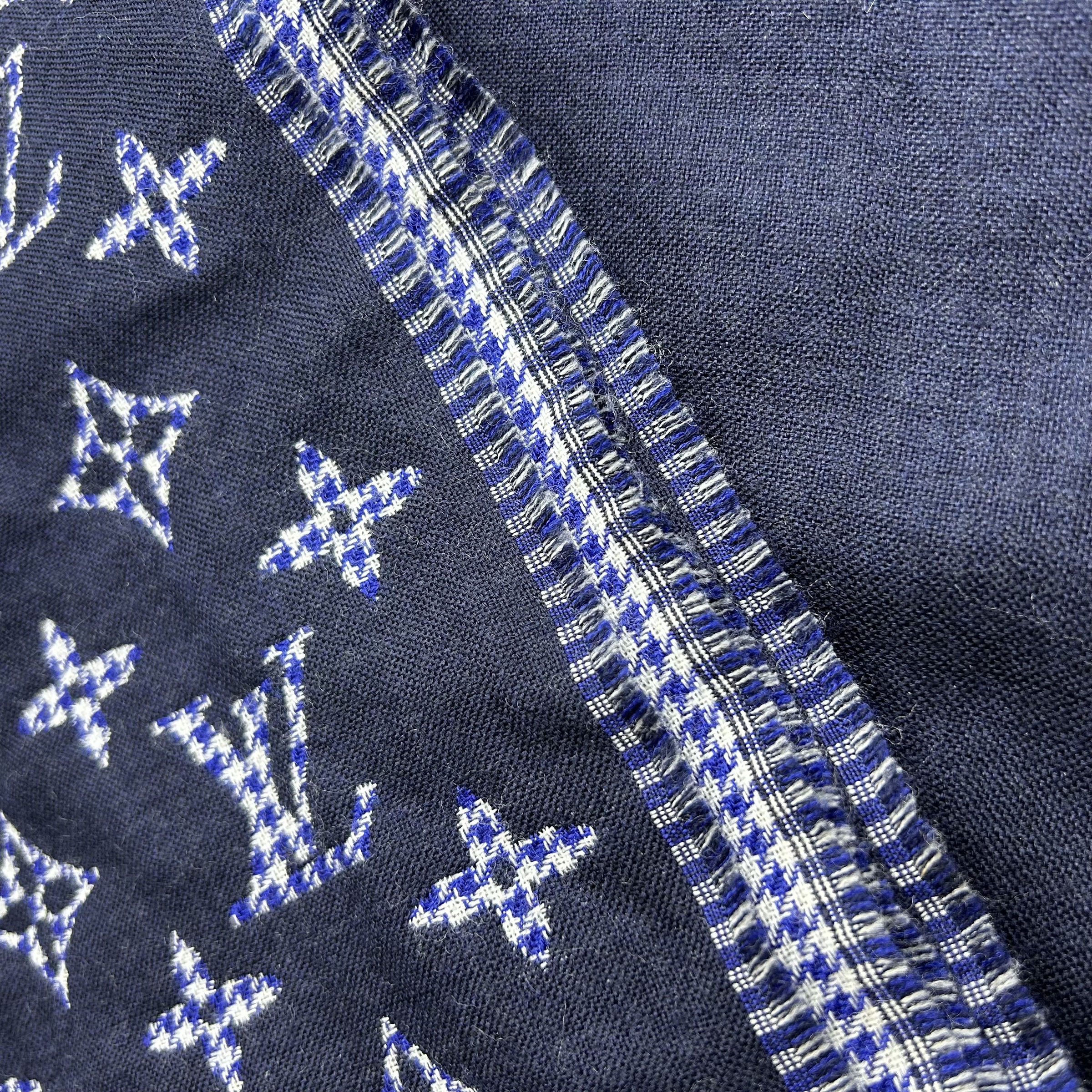 PREOWNED LOUIS VUITTON PIED-DE-POULE BLEU SCARF