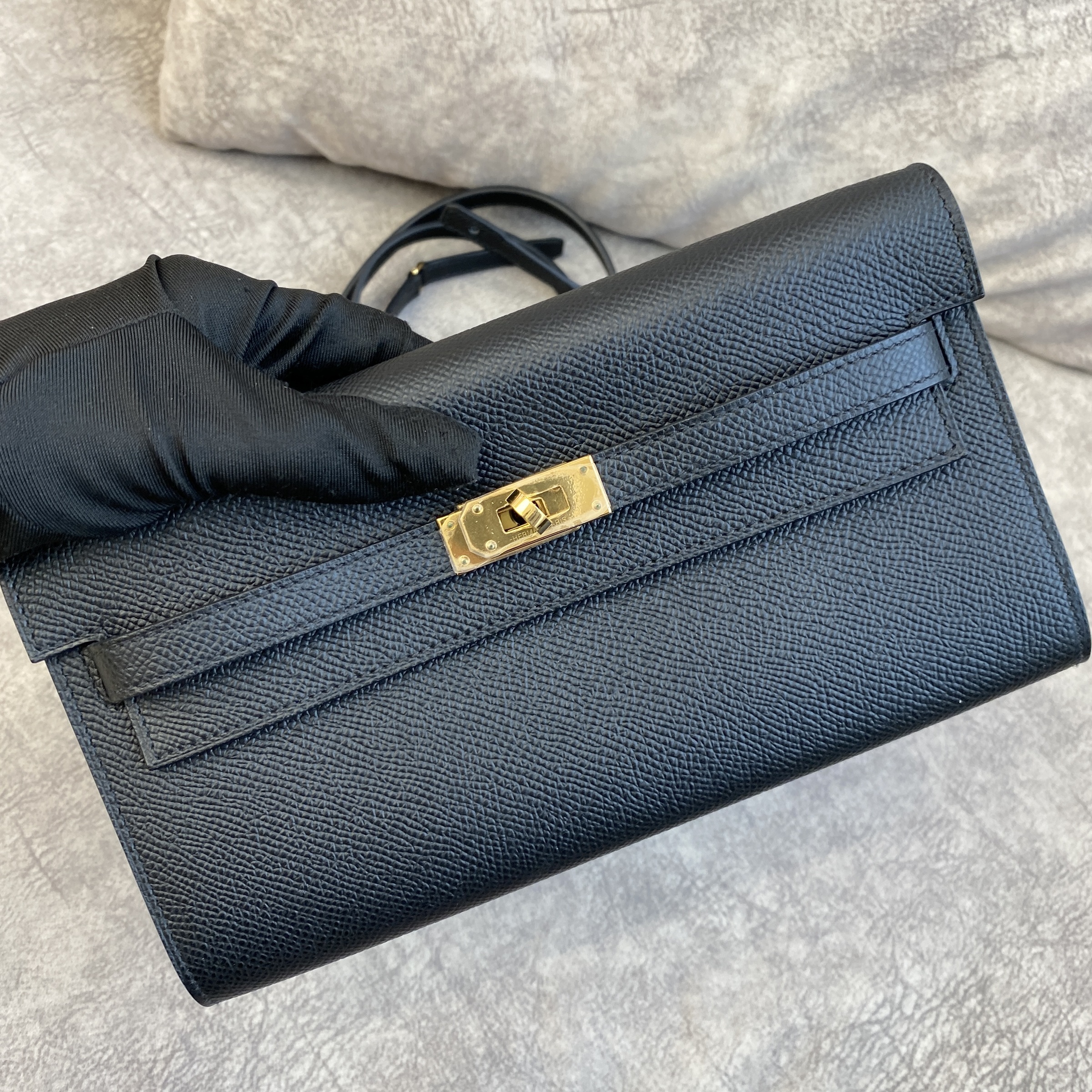 PREOWNED HERMES KELLY TO GO EPSOM LEATHER BLACK (STAMP U)