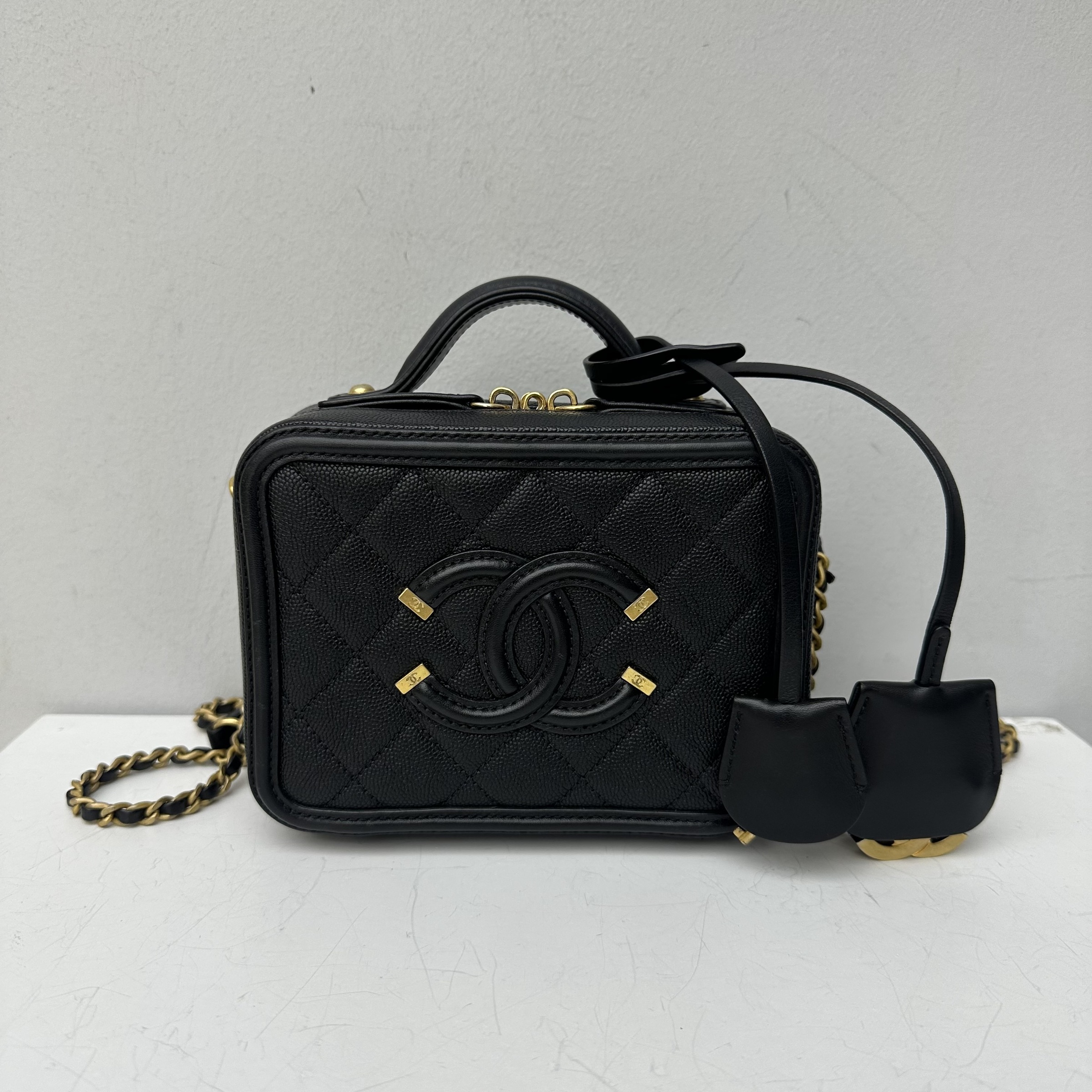 PREOWNED CHANEL BLACK CAVIAR CC FILIGREE VANITY CASE SMALL (25XXXX23)
