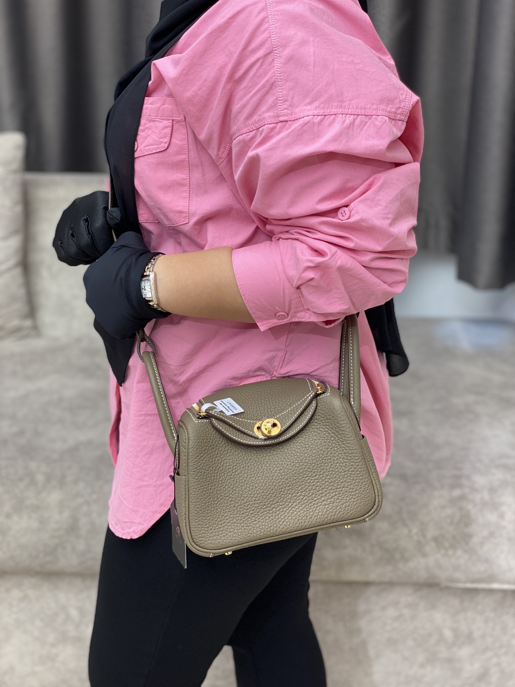 PREOWNED HERMES MINI LINDY TAURILLON CLEMENCE 18 ETOUPE GHW (STAMP U)