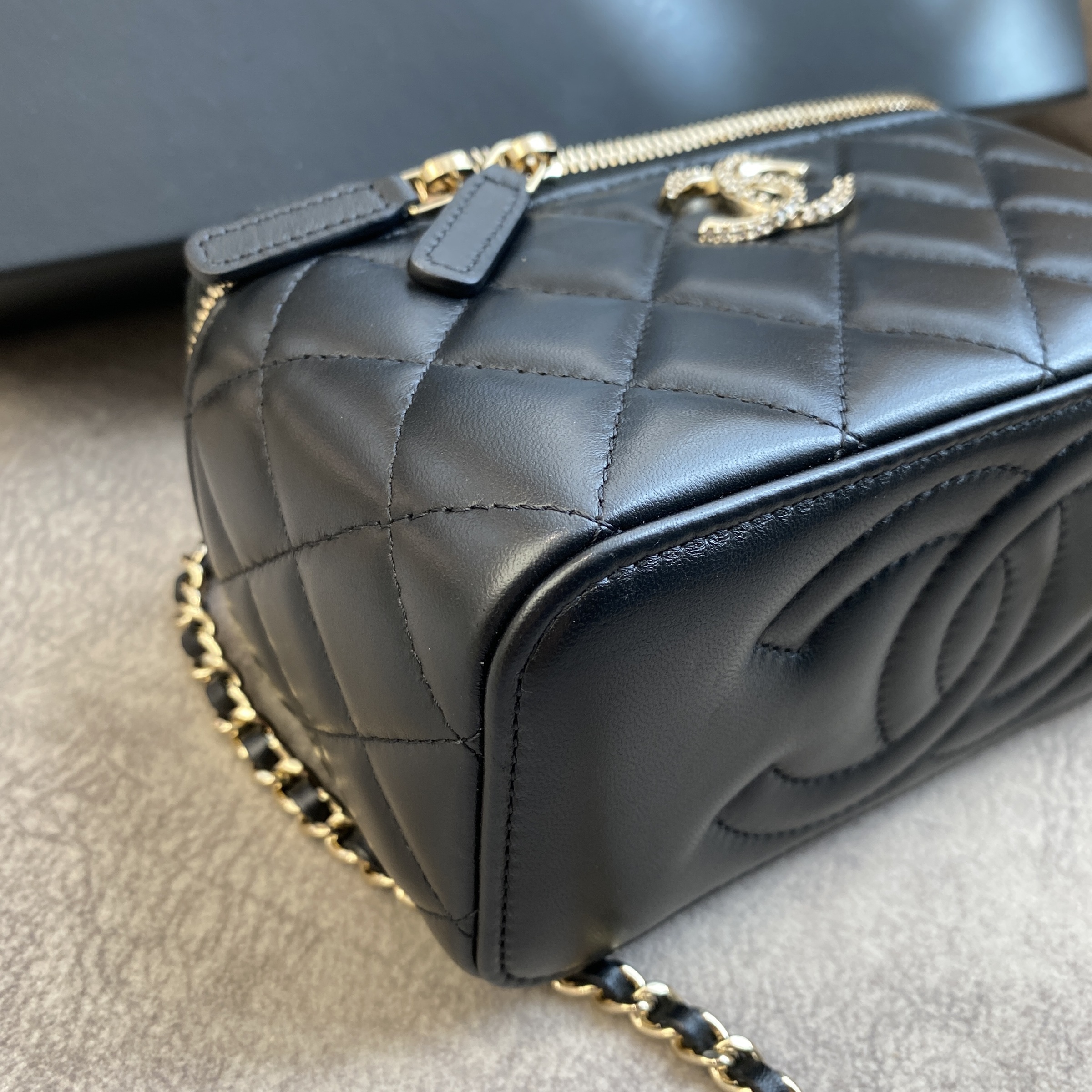 PREOWNED CHANEL CLASSIC TOP HANDLE VANITY CASE LAMBSKIN GHW(GCXXXXT1)